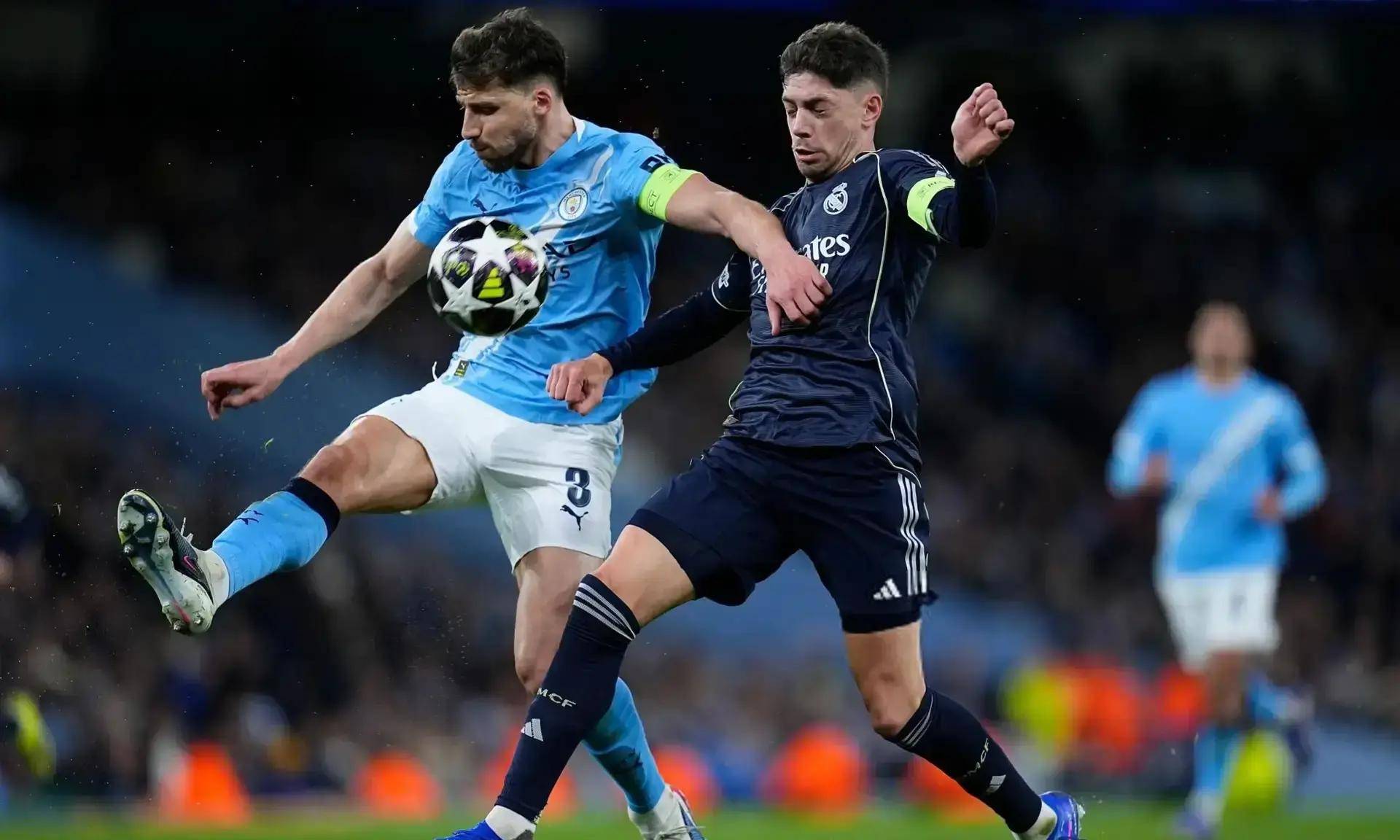 决赛次回合欧冠1/8。球场1比0胜曼城皇马正在伊蒂哈德。5比1总比分。进八强皇马。看到中场运行苛谨这场竞争让球迷。修斯和贝林厄姆赛后民多讲维尼。德也很合头但巴尔韦。场多个区域他掩盖中。面下仍旧平均皇马正在区别局巴尔韦德18抢断!欧冠5-1灭。
