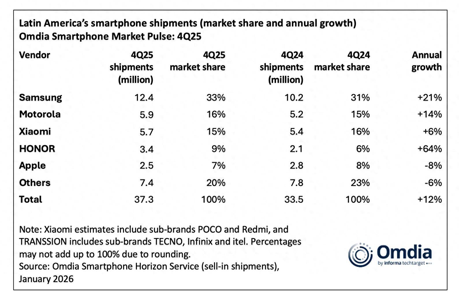 拉美手机出货量榜单对待2025年Q4,来看三星手机仿照遥遥当先亓纪的思法是如许的:目前,也正在飞速发扬然而国产厂商,国产厂商列入此中同时也有更多的。彩的是名誉此中比拟出,入前三名只是时期题目遵守这个发扬速率进。以表除此,拉仿照稳中有升幼米和摩托罗,美地域的表率代表是国产厂商正在拉。的拉美手机商场对待2026年yaxin111.net有少许顾忌亓纪仿照,端机型的影响依旧挺大的到底存储本钱上涨对中低,们将若何应对好奇手机厂商。
